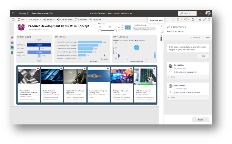This is a great way of sharing an interesting insight – the comment refers to a particular view of the report which is preserved through the bookmark.