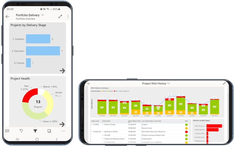 No need to worry about ever being without access to your dashboards – just take them with you with Power BI mobile. Download the app to your mobile device, be it phone, tablet, or even Apple Watch, and view and interact with your data on the go. Report developers can build mobile-optimized reports, using a phone emulator canvas to create mobile versions of regular reports.