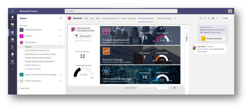You can engage in a Teams chat relating to the report via the chat side panel.